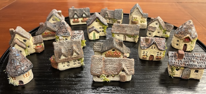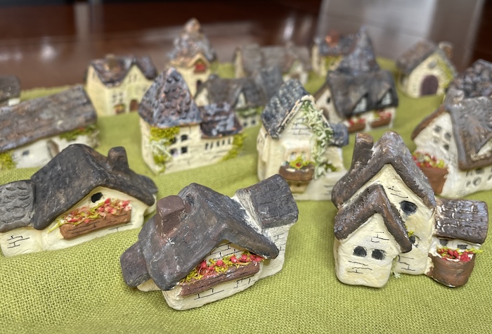 ミニチュアハウス 手の中でこちゃこちゃ作った小さな家が気がつけばこんなに増えました。基本的には実用的なものを作りたいけれど、一見無駄と思える小物達に癒されるんだなぁ。 投稿ナビゲーション 2025年陶芸展