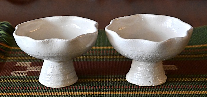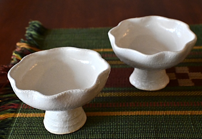 古信楽の土にカオリンマット釉。直径11cm、高さ7cm。