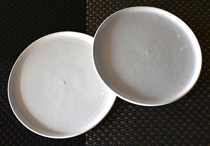 古信楽の土にカオリンマット釉。直径21cm。